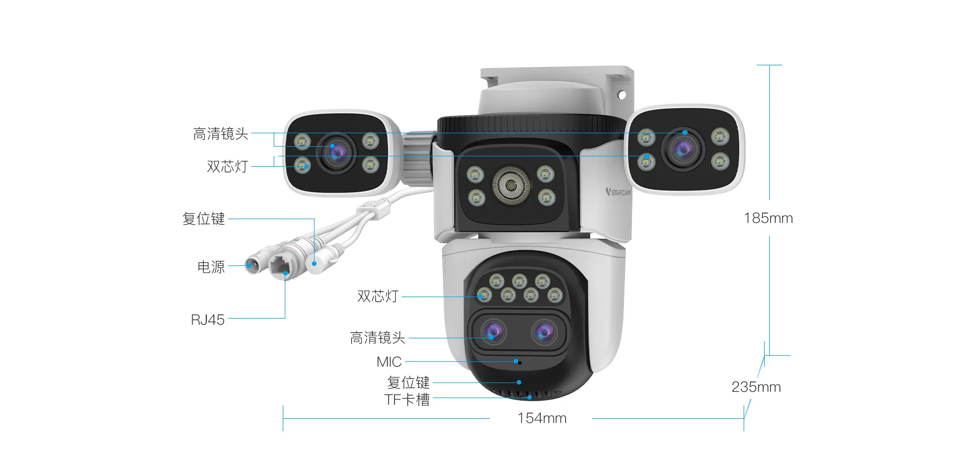 | 镜头 | 枪机:4mm+4mm,球机:4mm+12mm | |