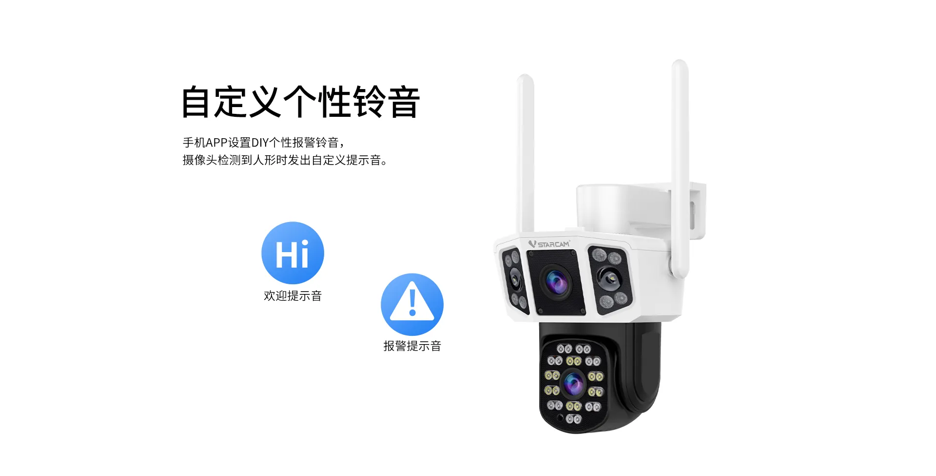 | 报警 | 报警检测 | 支持移动侦测,人形侦测,人形框定,区域侦测,警笛声报警 |